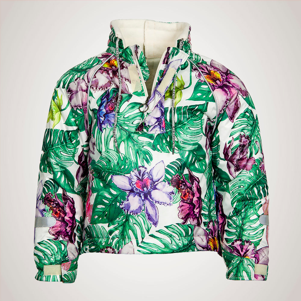 Anorakken har god vidde og er designet med raglanermer som gir god romslighet. Kragen er designet for å være høy bak for å dekke halsen og kort foran med plass til haken. Kragen har også en justeringssnor slik at du kan stramme den og dekke nakken helt hvis hodet har en tendens til å henge fremover. Kragen og mansjetten har myk fleece inni, så den er herlig myk mot huden.