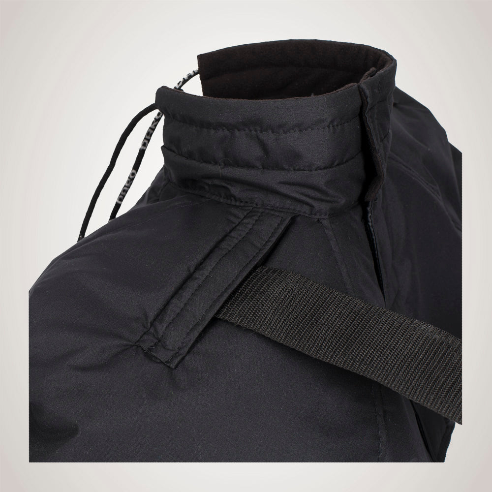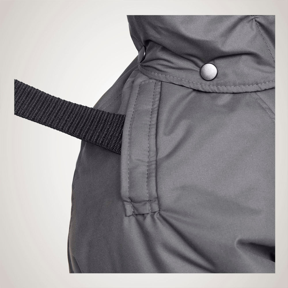 Har man behov for at få seler igennem jakken, kan der laves huller til dette. De bliver lavet som en åbning på skulderen med overfald og velcrolukning, så de kan lukkes til og luft ikke har nemt ved at trække igennem. Laves i begge skuldre.