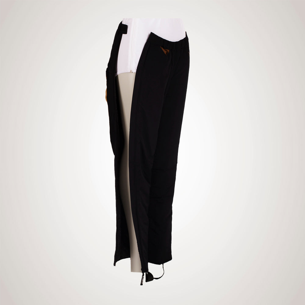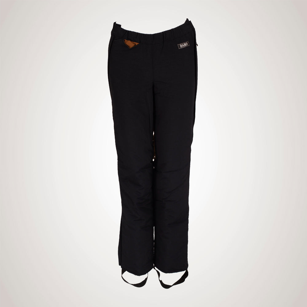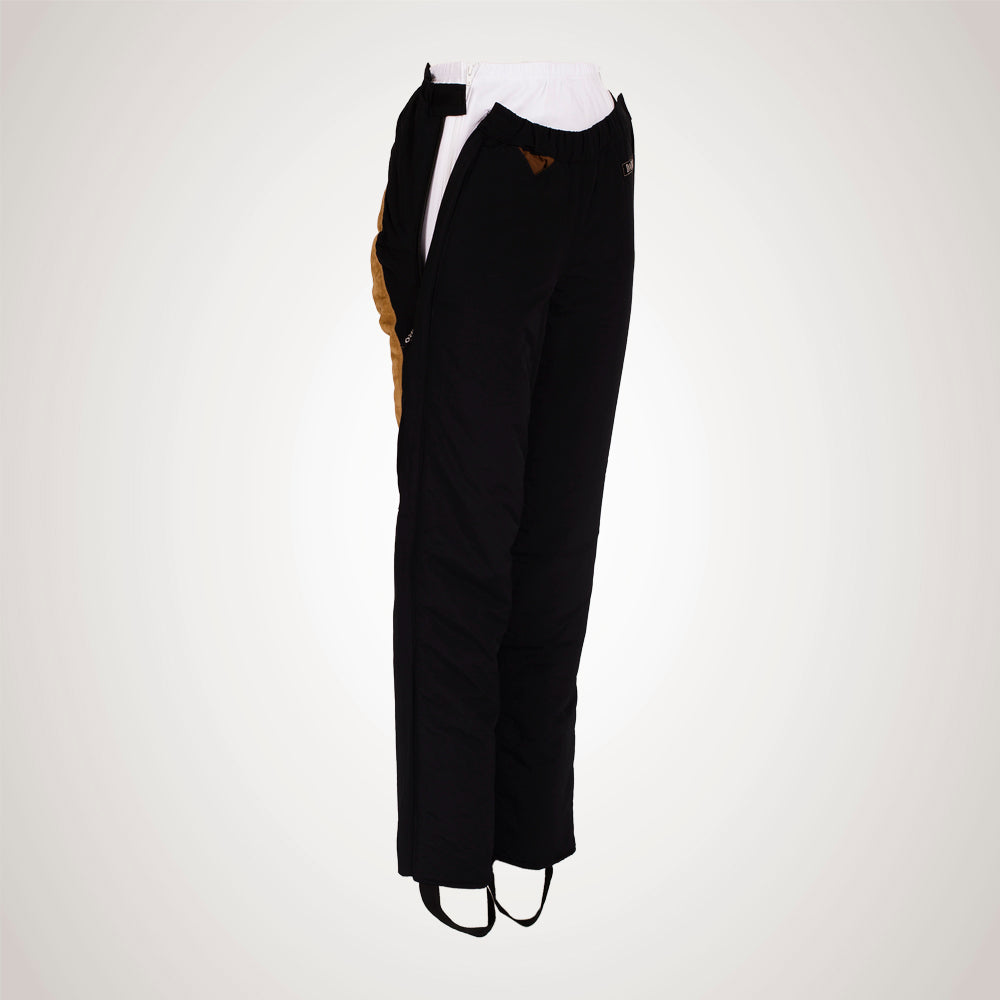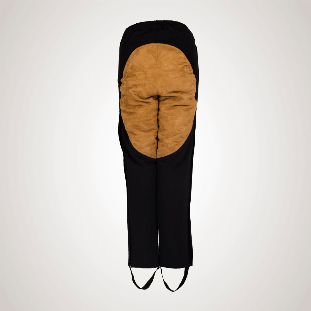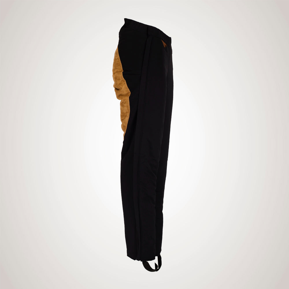De er isolert med Thinsulate og er pustende, vindtette og vannavvisende med et vannsøyletrykk på 10 000 mm. De har også et stykke imitert semsket skinn sydd på baksiden av buksene, noe som gjør dem ideelle for ridning.