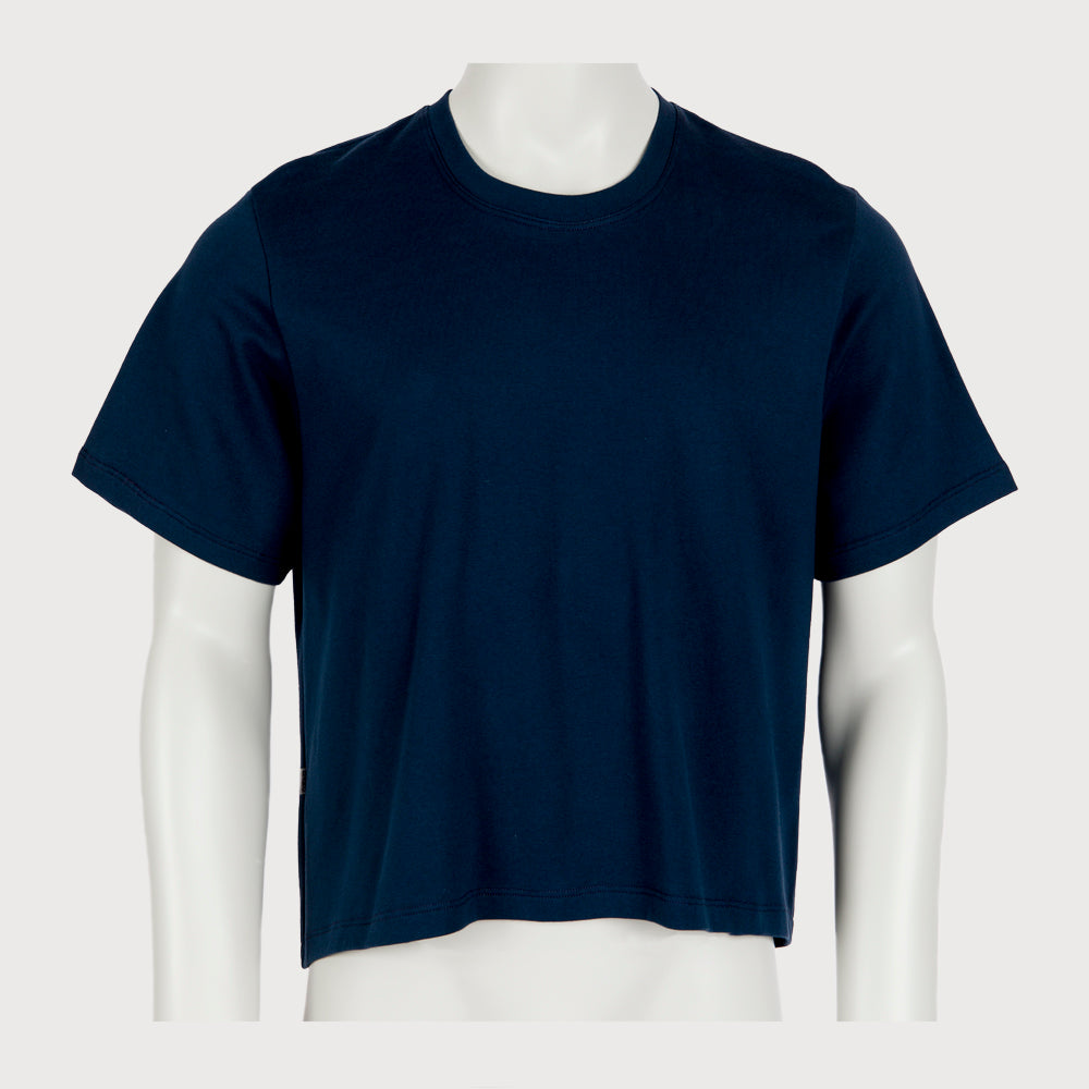 Davidsen-t-skjorten er designet for rullestolbrukere, da den har en kort lengde foran og kan åpnes bak med en gripestropp.