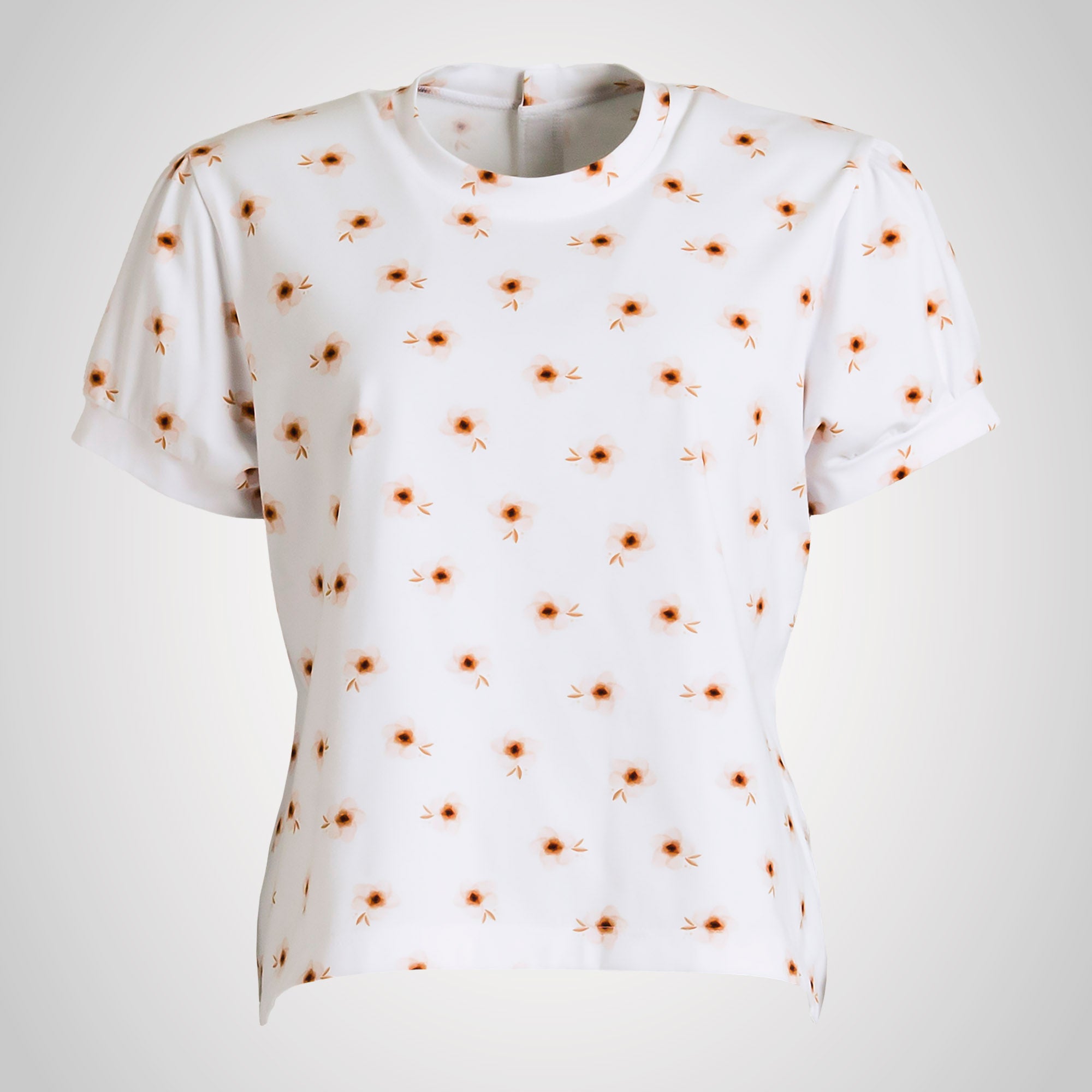 Denne modellen har korte ermer med rynker som gir en fin puffereffekt på skulderen. Den er tilgjengelig i en deilig myk jersey, i mange forskjellige farger.