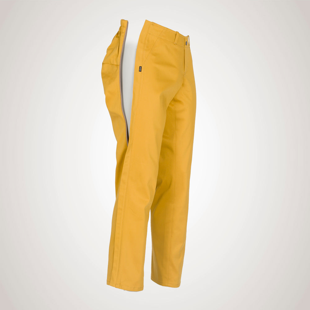 Disse bukser har 2 gennemgående (GG) lynlåse i sidesømmen. Dette gør at buksen kan åbnes helt op, og derved er lettere for en hjælper at give bukserne på. De har snydegylp og snydelommer, bæltestropper samt elastik på bagstykket.
