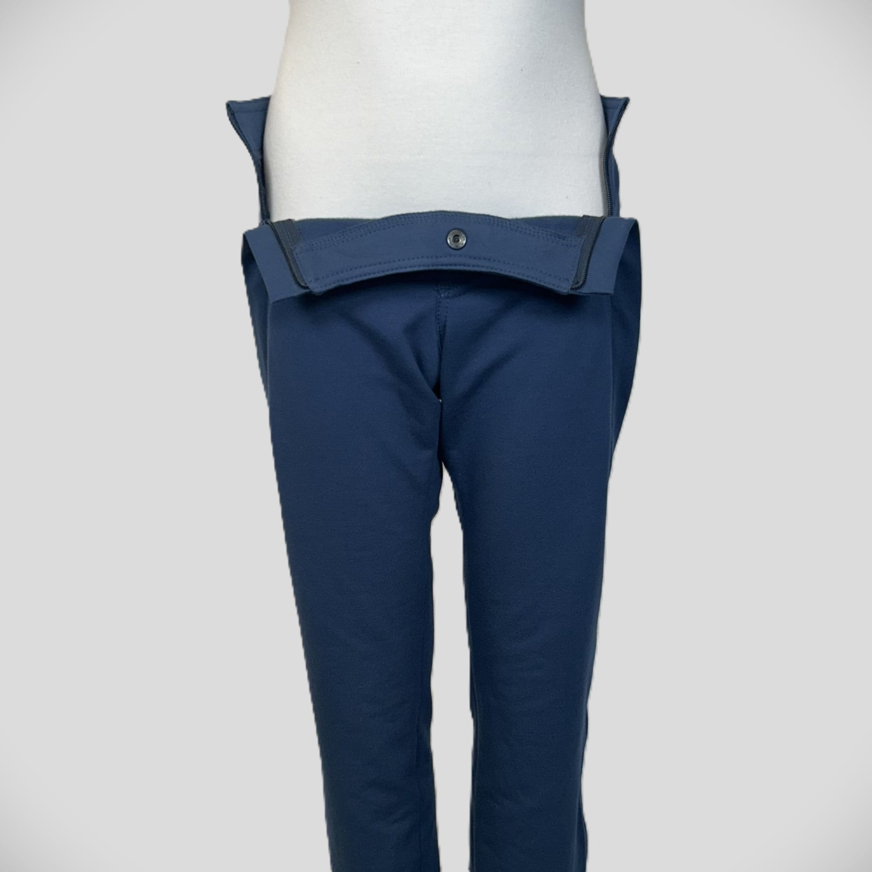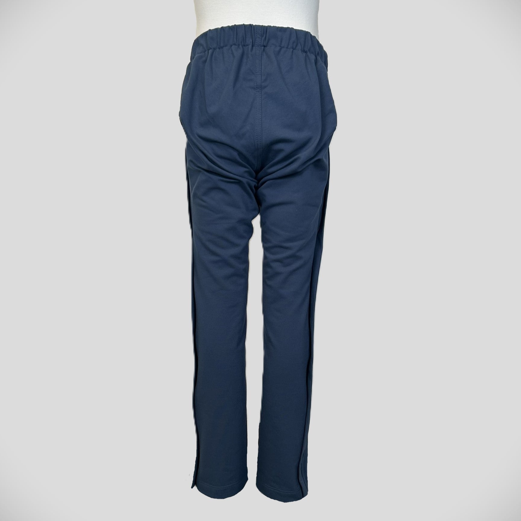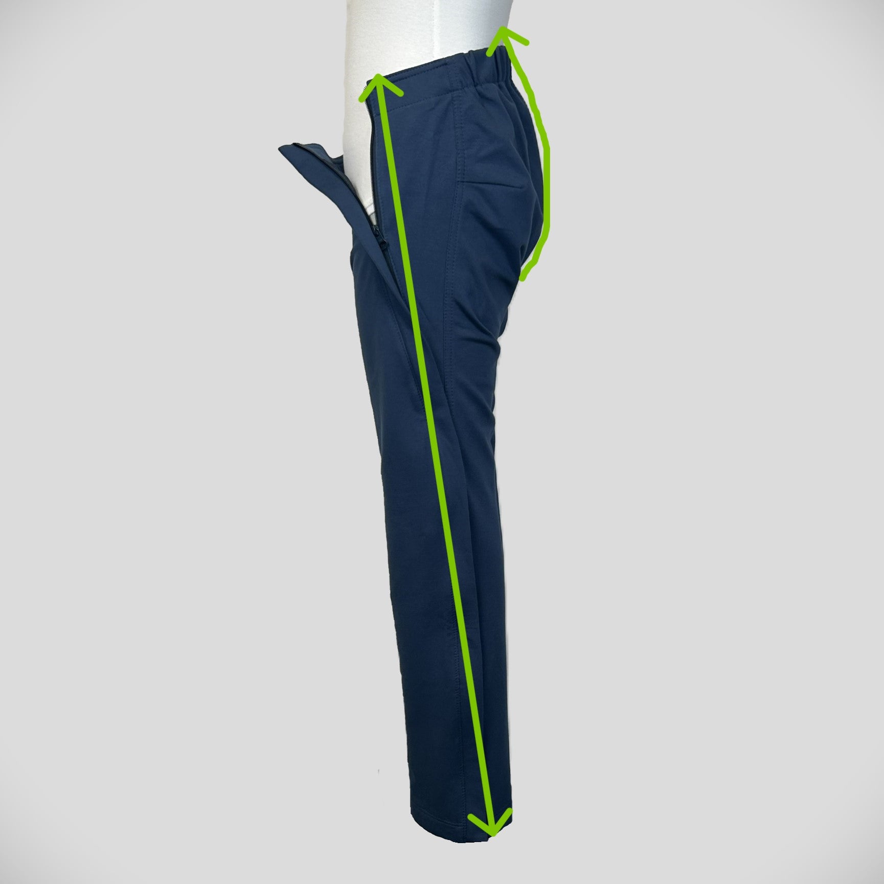 Disse bukser har 2 skrå gennemgående (GG) lynlåse der går fra midt talje og ud i sidesømmen. Dette gør at buksen kan åbnes helt op, og derved er lettere for en hjælper at give bukserne på. De har snydegylp samt elastik på bagstykket.