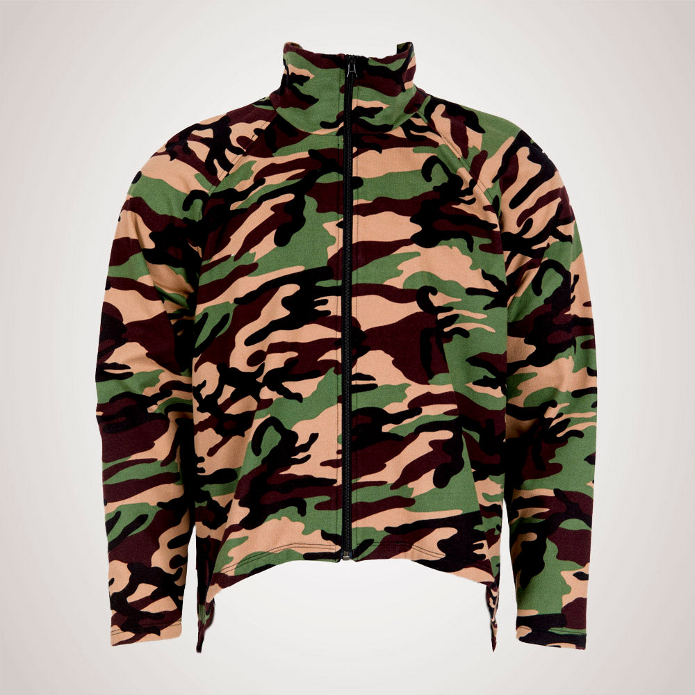 Denne model har en god pasform med raglanærmer, der giver en god rummelighed. Den har en lang lynlås midt foran, og en høj krave.