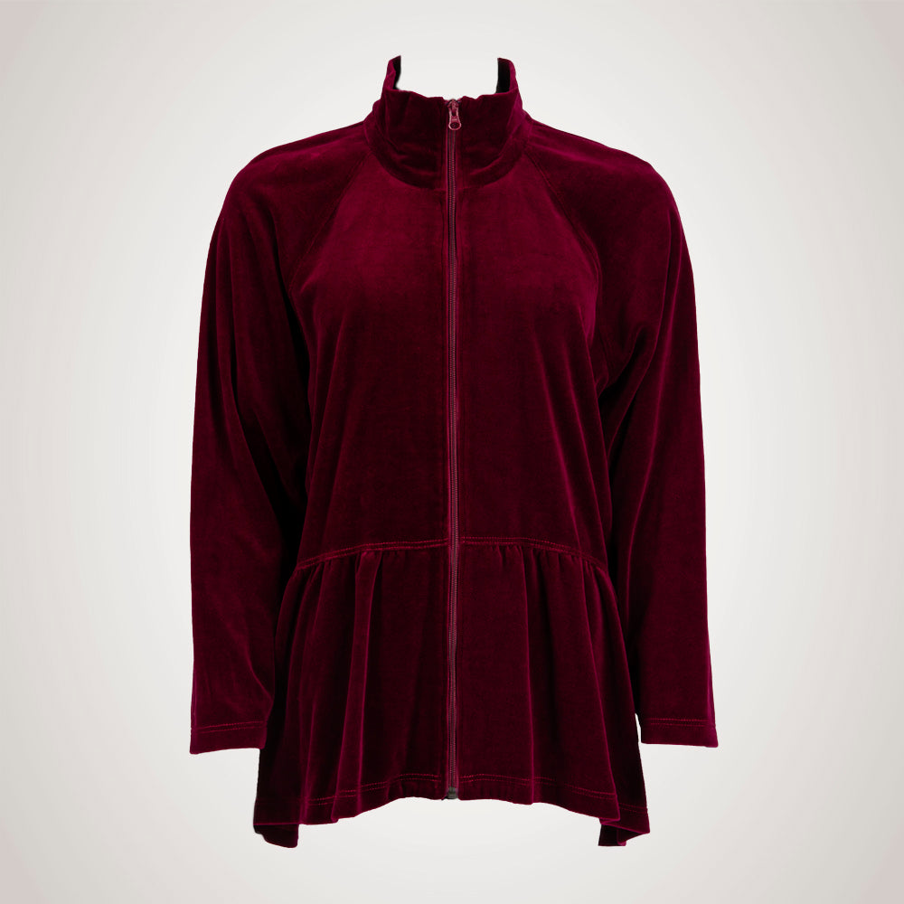 Denne model har en god pasform med raglanærmer, der giver en god rummelighed. Den har en lang lynlås midt foran, og en høj krave. Derudover har modellen et skørt foran der lægger sig pænt på lårene.