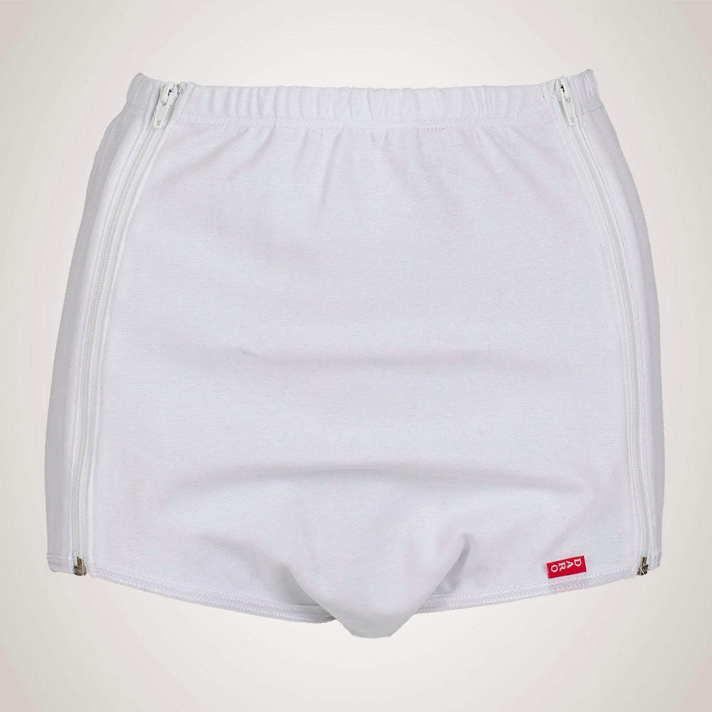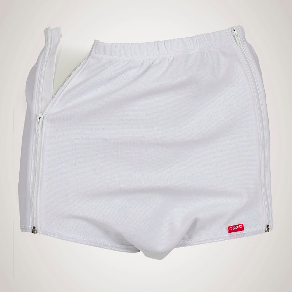 De er rummelige og ideelle til ble-brugere, og kan ved hjælp af de to delbare lynlåse i siderne åbnes helt op, og er derved lette at få på.