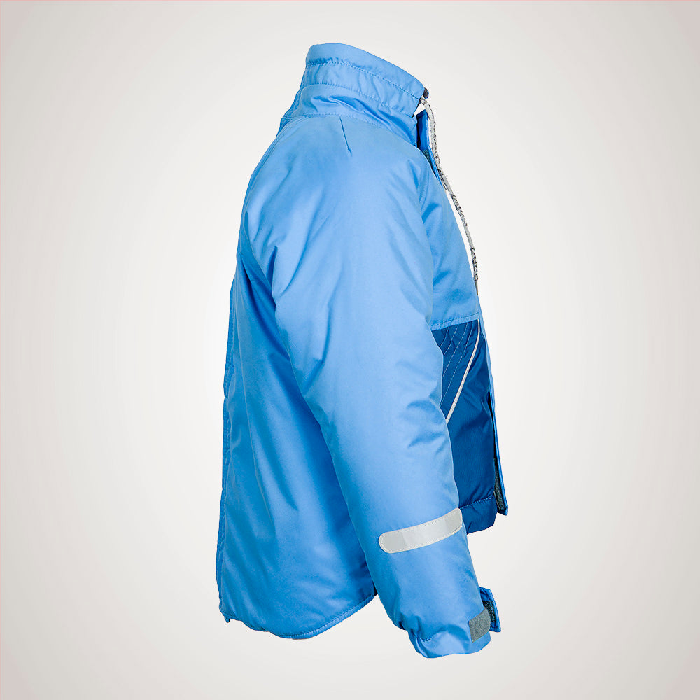 Jakken har sikkerhedsreflekser på siden af ærmet, og midt på lommeklapperne for bedre synlighed i mørke.