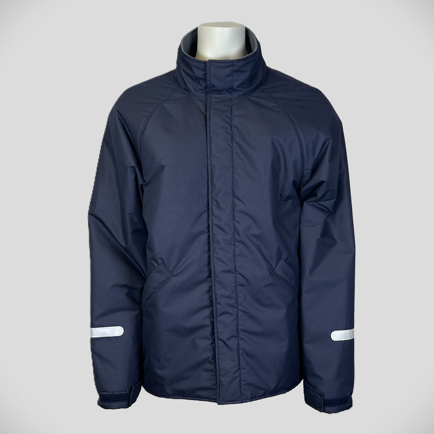 Jakken har sikkerhedsreflekser på siden af ærmet for bedre synlighed i mørke.