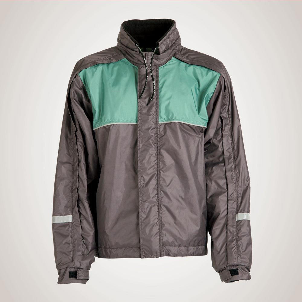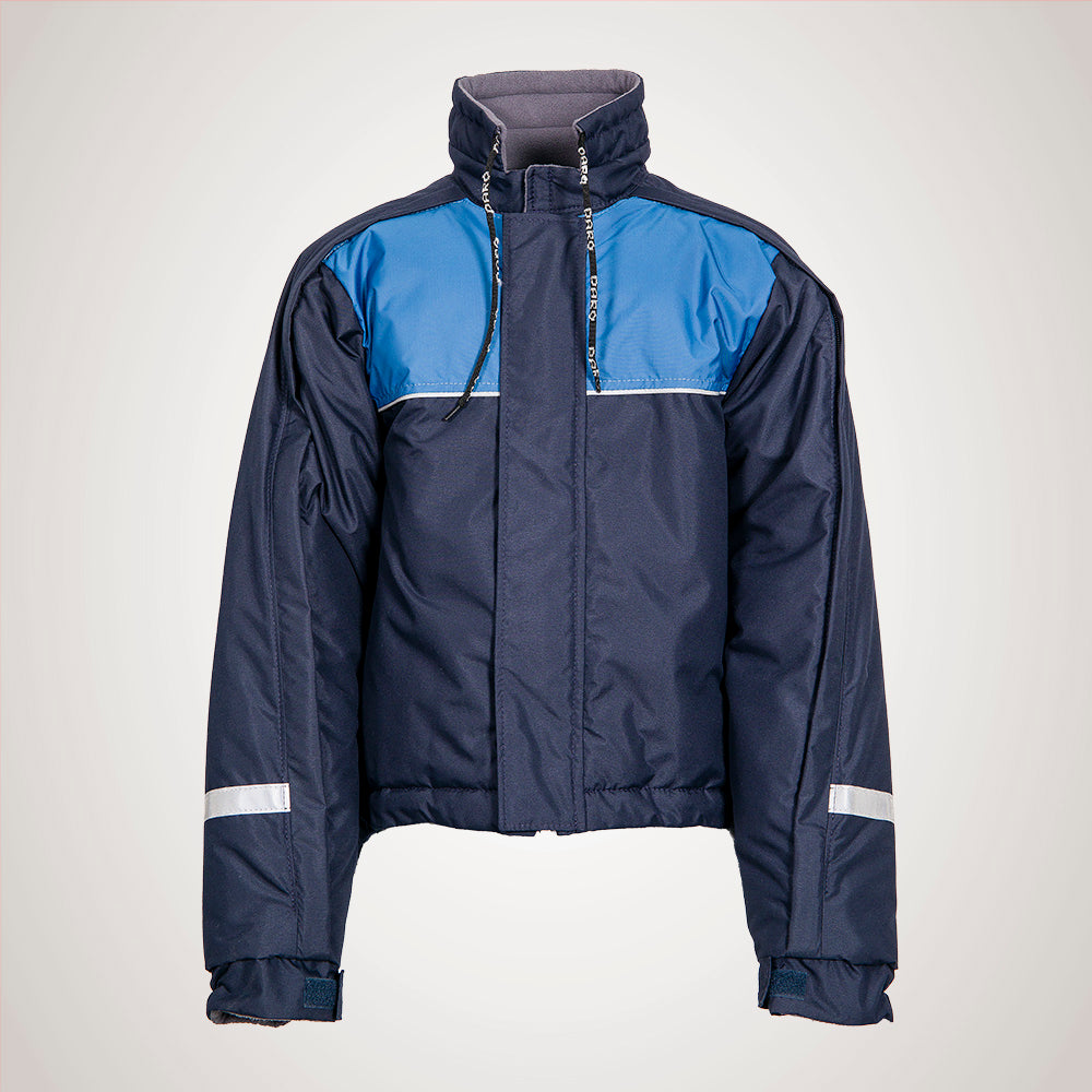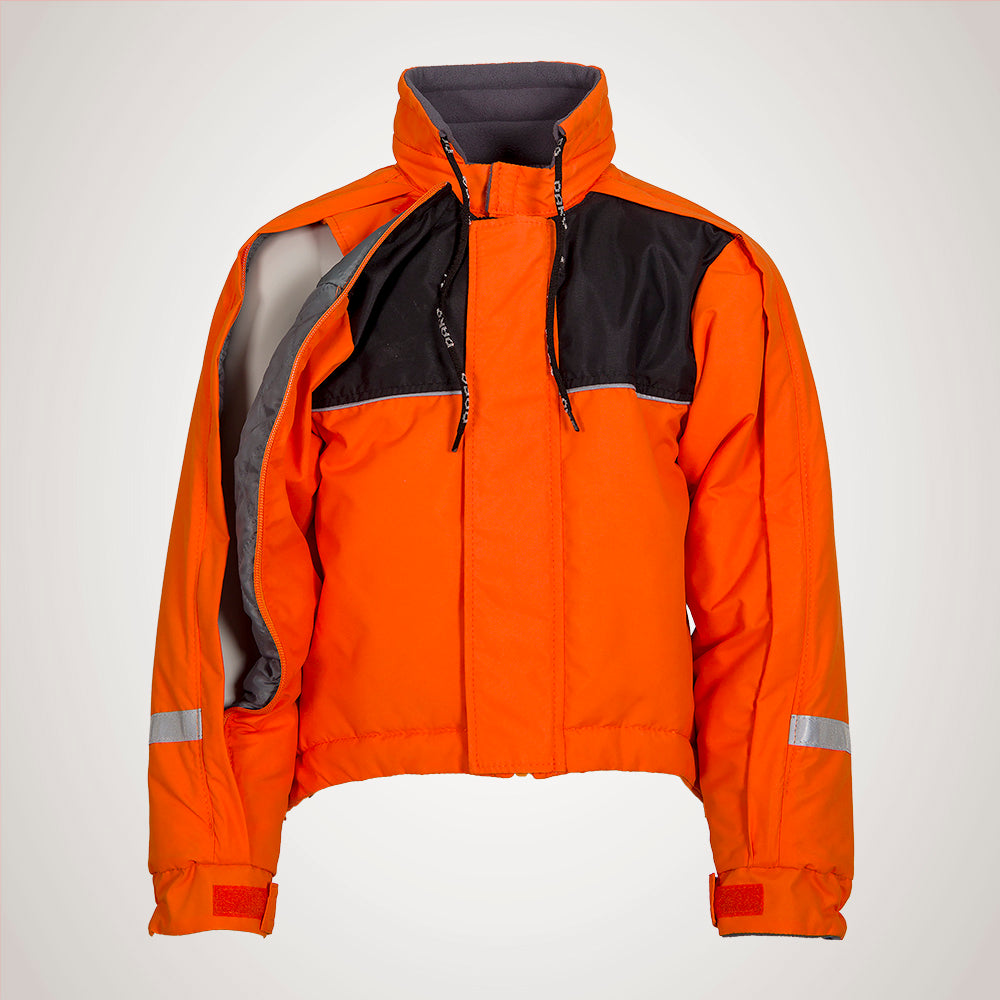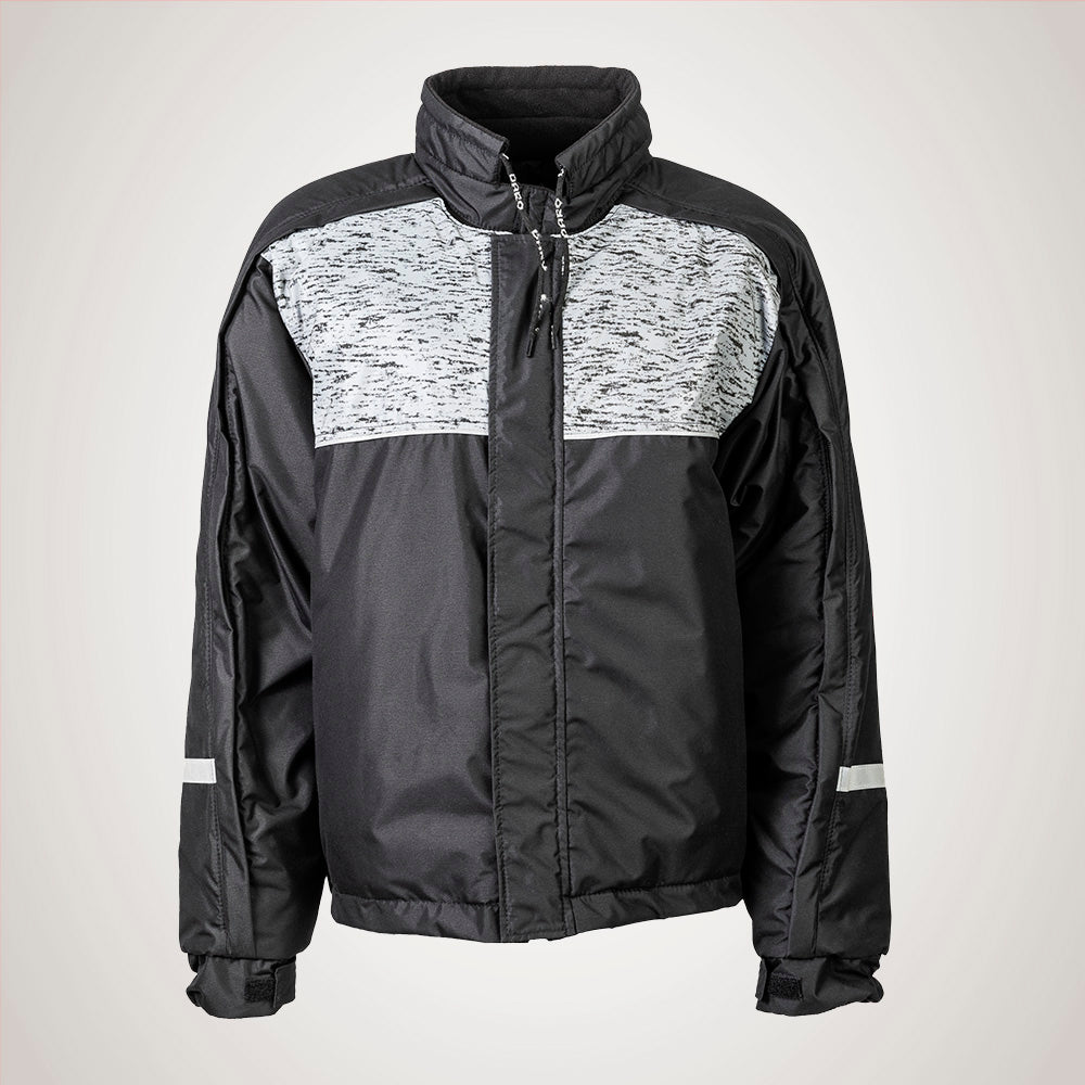 Jakken har sikkerhedsreflekser på siden af ærmet, og refleks-piping på midten af brystet for bedre synlighed i mørket.