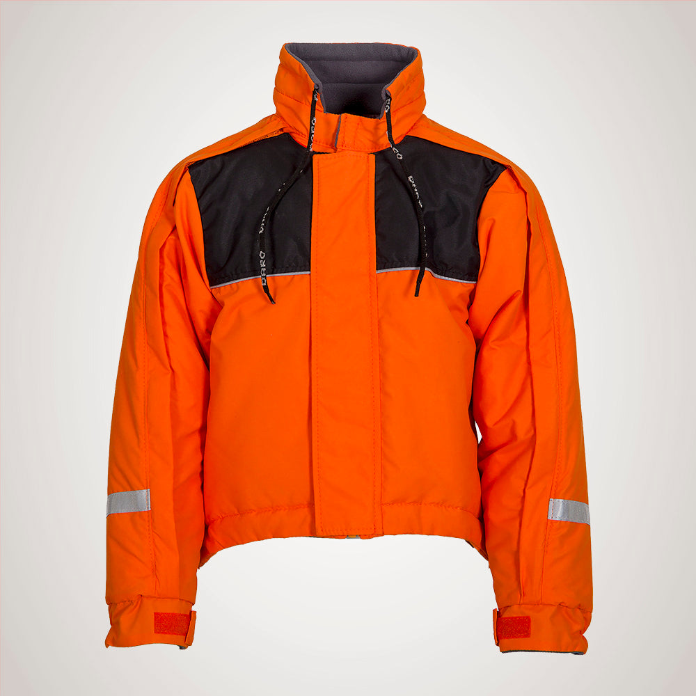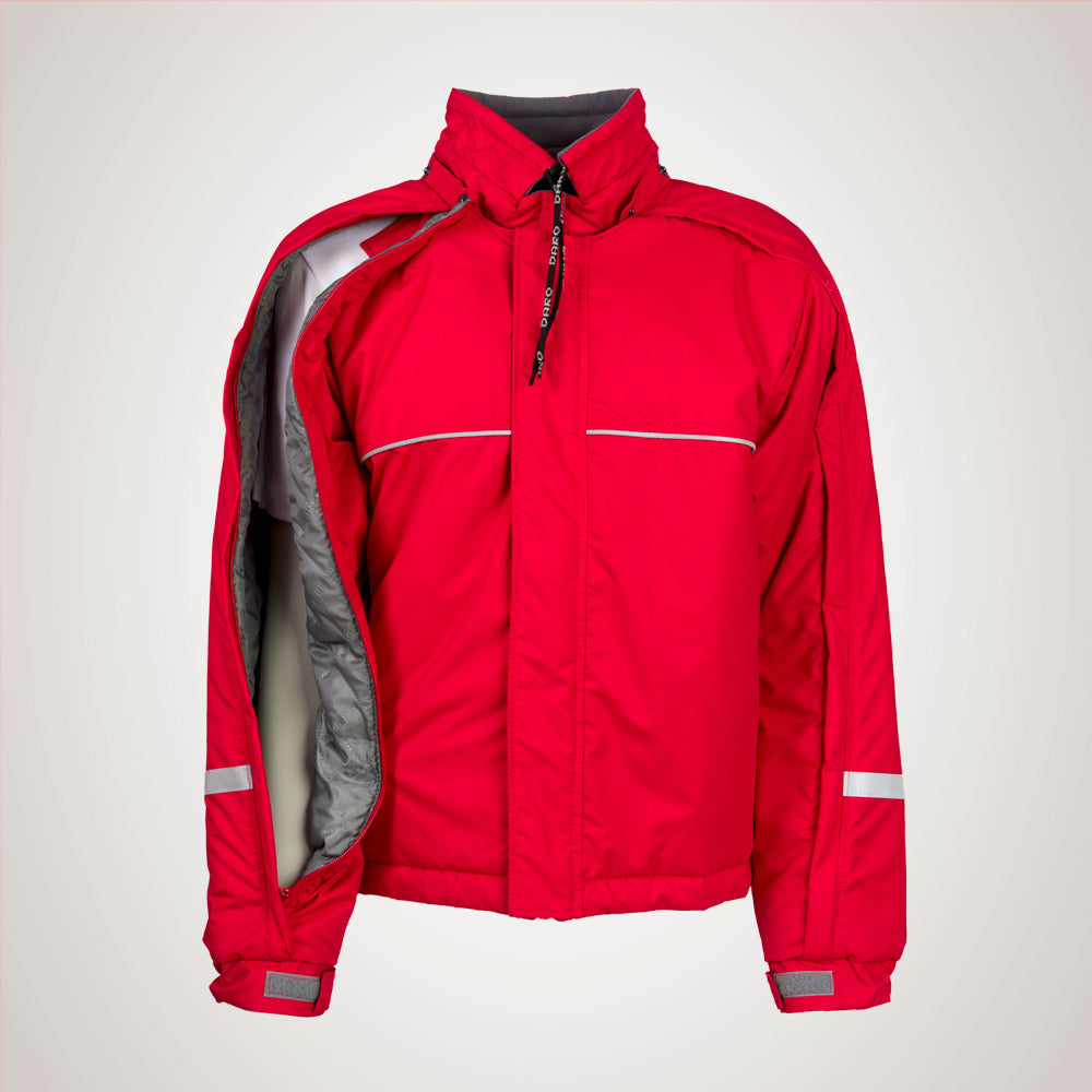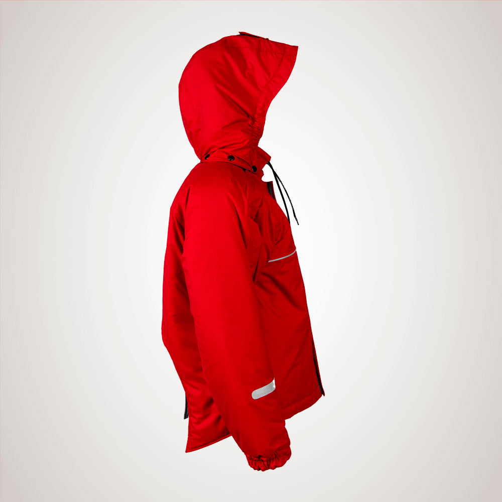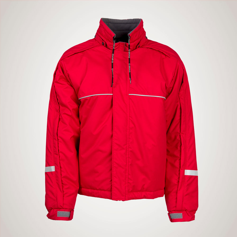 Jakken har sikkerhedsreflekser på siden af ærmet, og refleks-piping på midten af brystet for bedre synlighed i mørket.