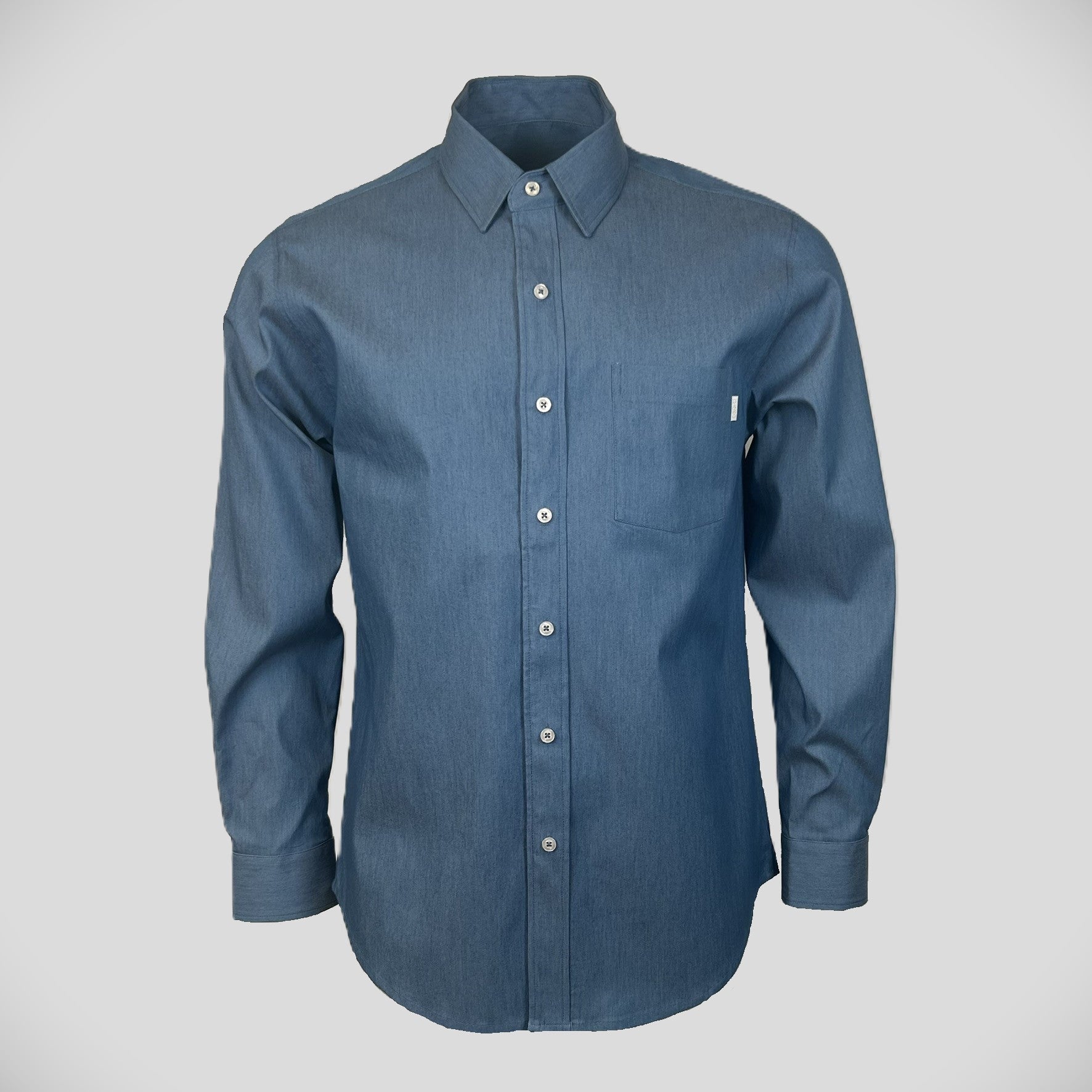 Skjorten er i reguler fit og har almindelig krave, lange ærmer, læg på ryggen, brystlomme og ærmemanchet med slids. Magneterne foran i stolpen og i hver ærmemanchet er indsyet og dermed skjulte. Ovenpå er syet hvide knapper, for et klassisk og almindeligt look.
