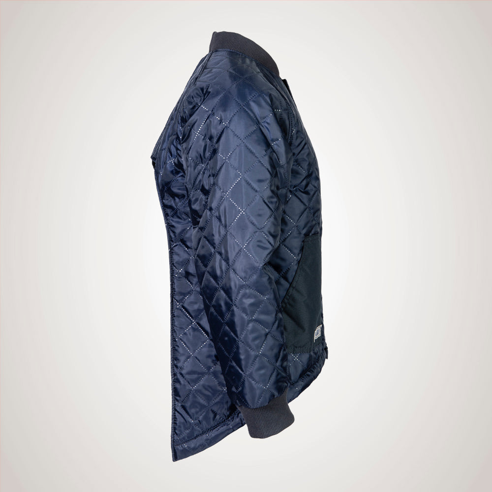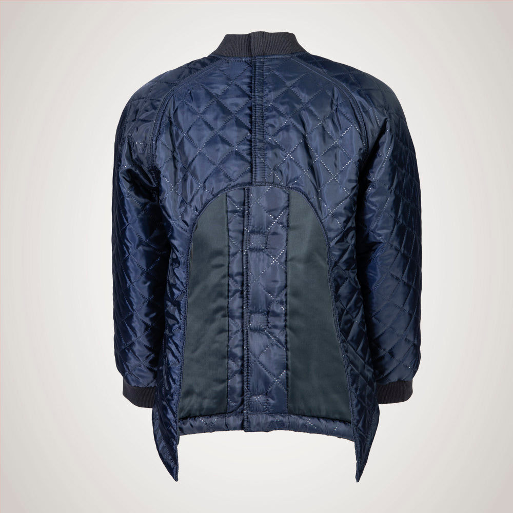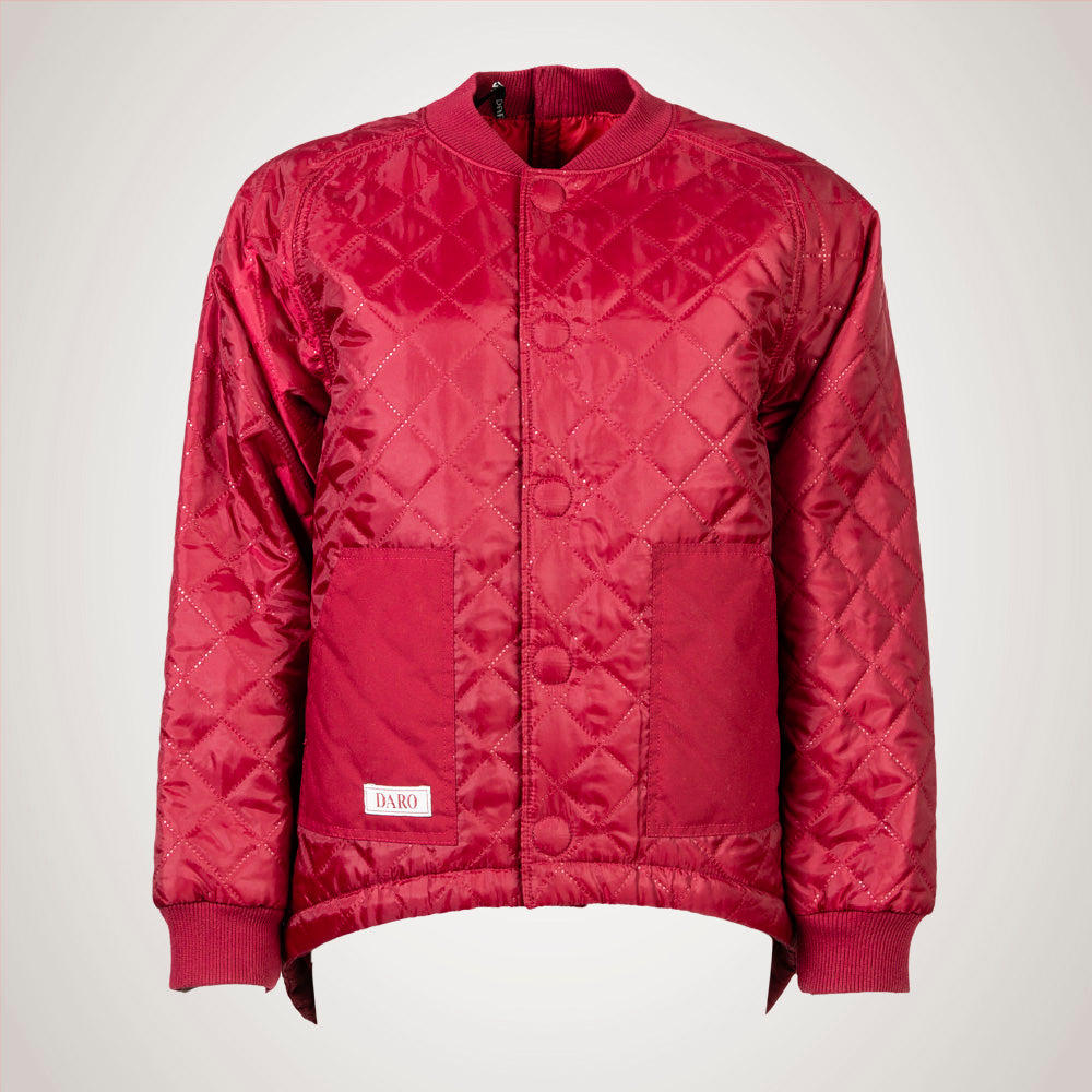 Jakken er syet i et quiltet kvalitets-materiale, og er uden isolering. Den har en god vidde og er designet med raglanærmer, der giver en god rummelighed. Kraven og ærme-manchetterne er i en kraftig ribkvalitet, der er blød og behagelig mod huden. Foran er der påsat to praktiske lommer, hvor der nemt kan være en mobiltelefon eller andet.