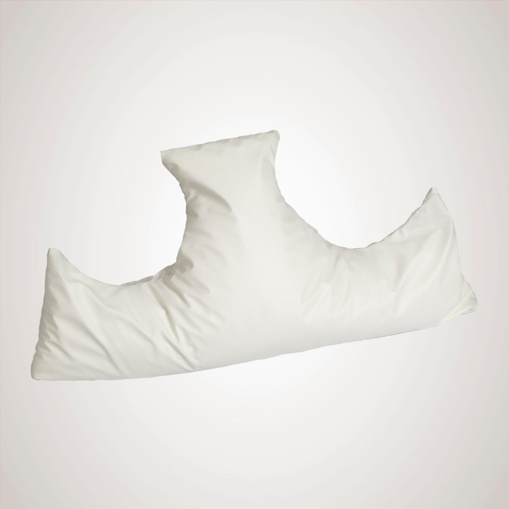 Den 3-benede pude løfter og støtter benene, samtidig med at den skaber afstand mellem knæene.