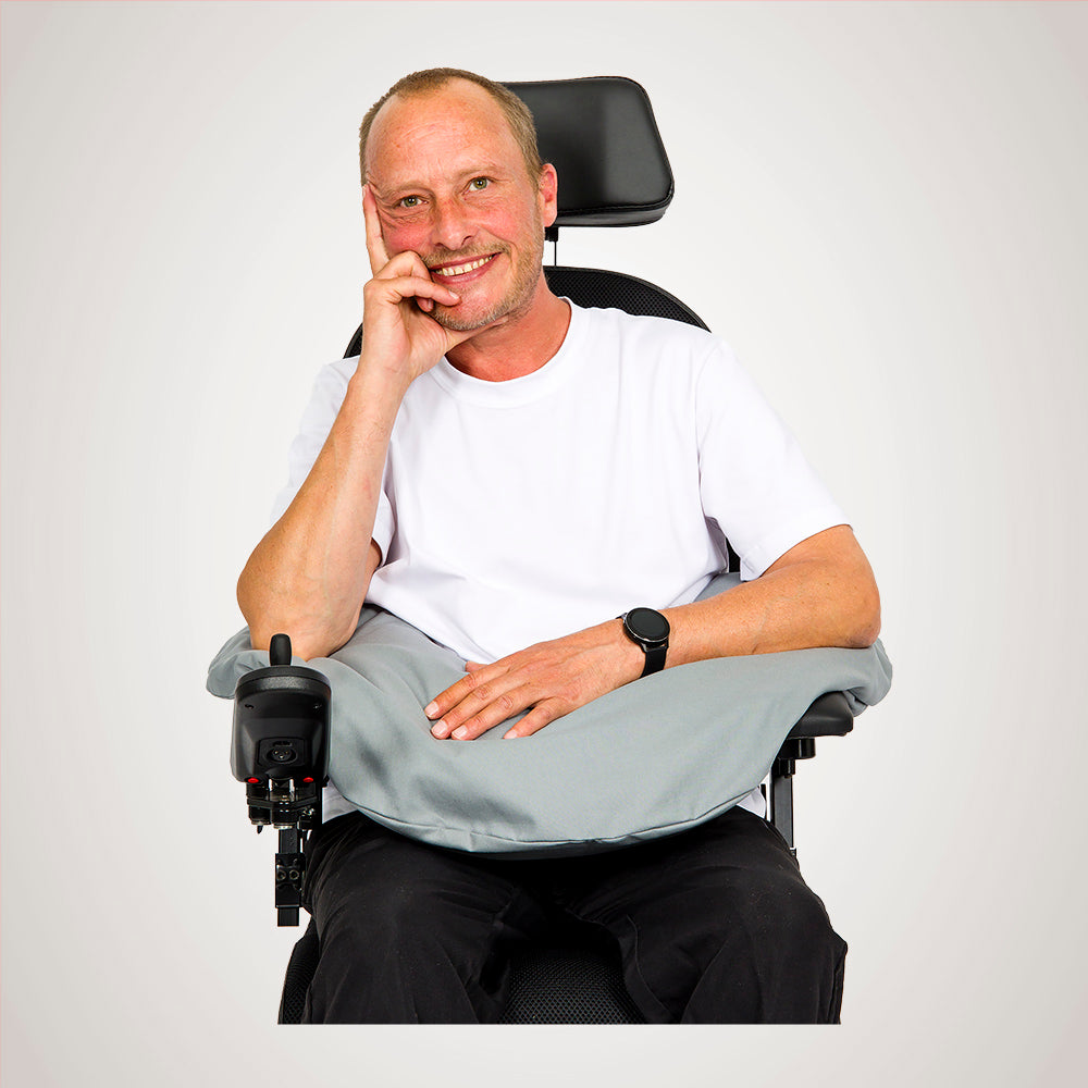 Krumpuden formes omkring kroppen til støtte eller hvile i stol eller seng.